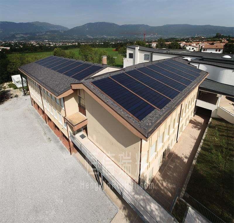 Высокотехнологичная фотогальваническая гибкая черепица ТЕГОСОЛАР, интегрированная в кровельное покрытие. Способна моментально трансформировать солнечную энергию в электроэнергию, используя так называемый «фотоэлектрический эффект».
