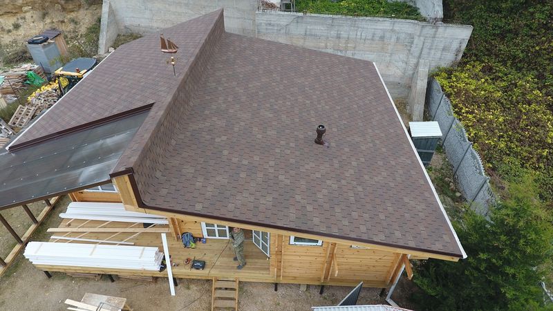 Натуральные коричневые оттенки черепицы хорошо сочетаются с фасадами в сливочных и светло-зеленых тонах. Лепестки лаконичной формы не отвлекают внимание от деталей кровли. Благородный матовый блеск гранулята подчеркивает класс материала.