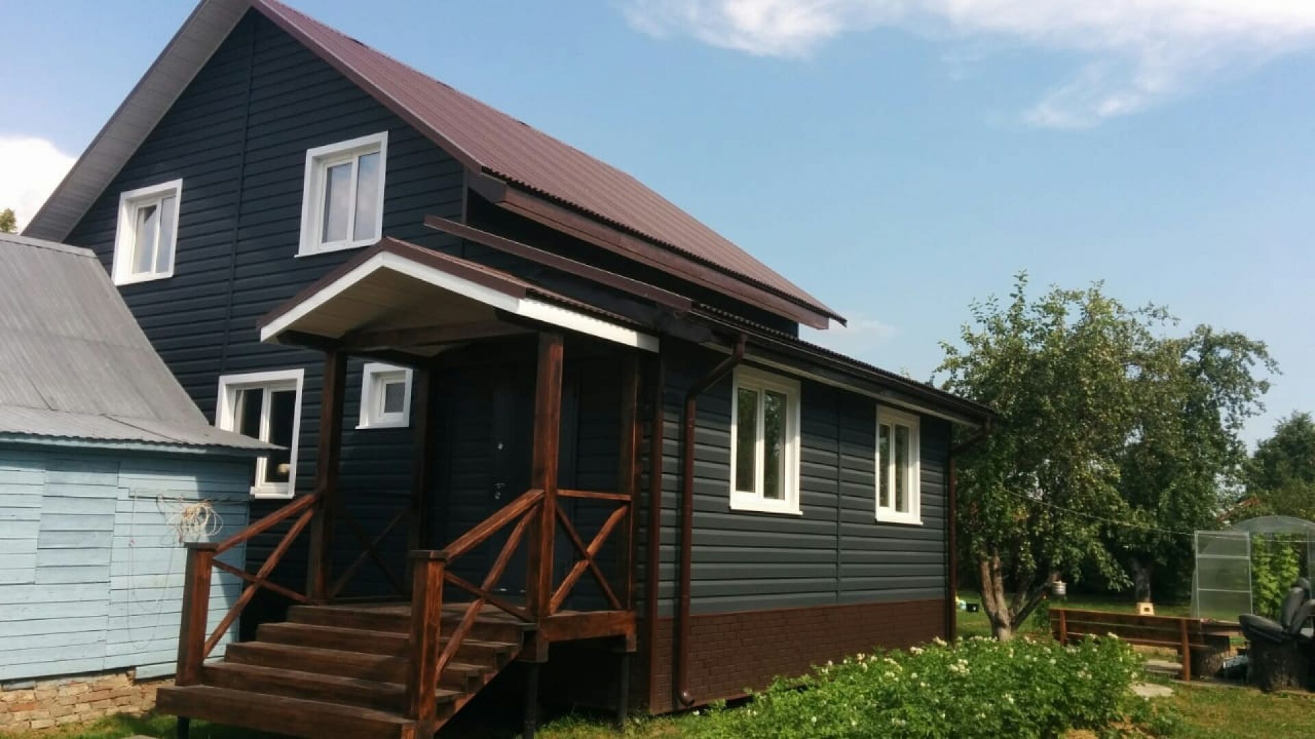 • В отличие от облицовки фасада деревом, металлический сайдинг Корабельная доска прост в монтаже и не требует дополнительного послемонтажного ухода.