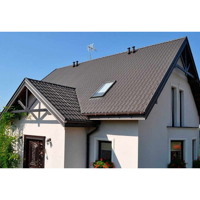 • Крыша защищена от физических повреждений, поскольку в основе указанного материала сталь 0.5 мм (с учётом металла, оцинковки и декоративно-защитного слоя).