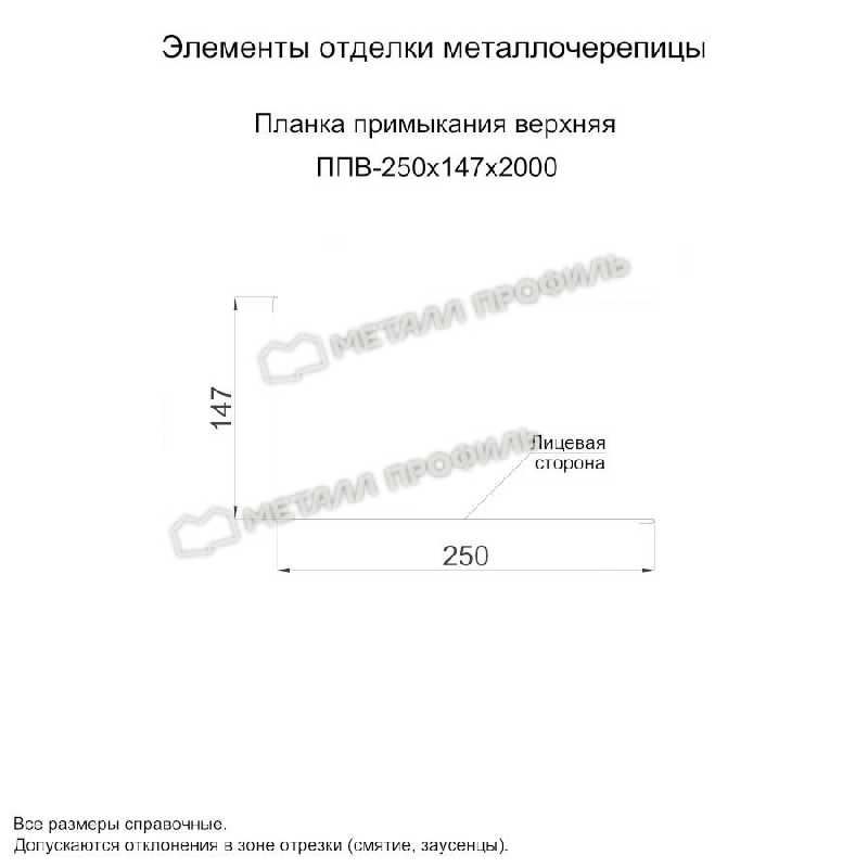 Планка примыкания верхняя 250х147х2000 (VikingMP E-20-9005-0.5)