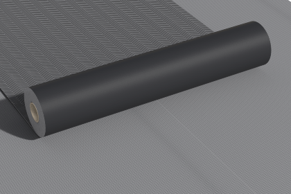 Рулонная полимерная мембрана с противоскользящим покрытием из пластифицированного поливинилхлорида на основе высокопрочного полиэстера.